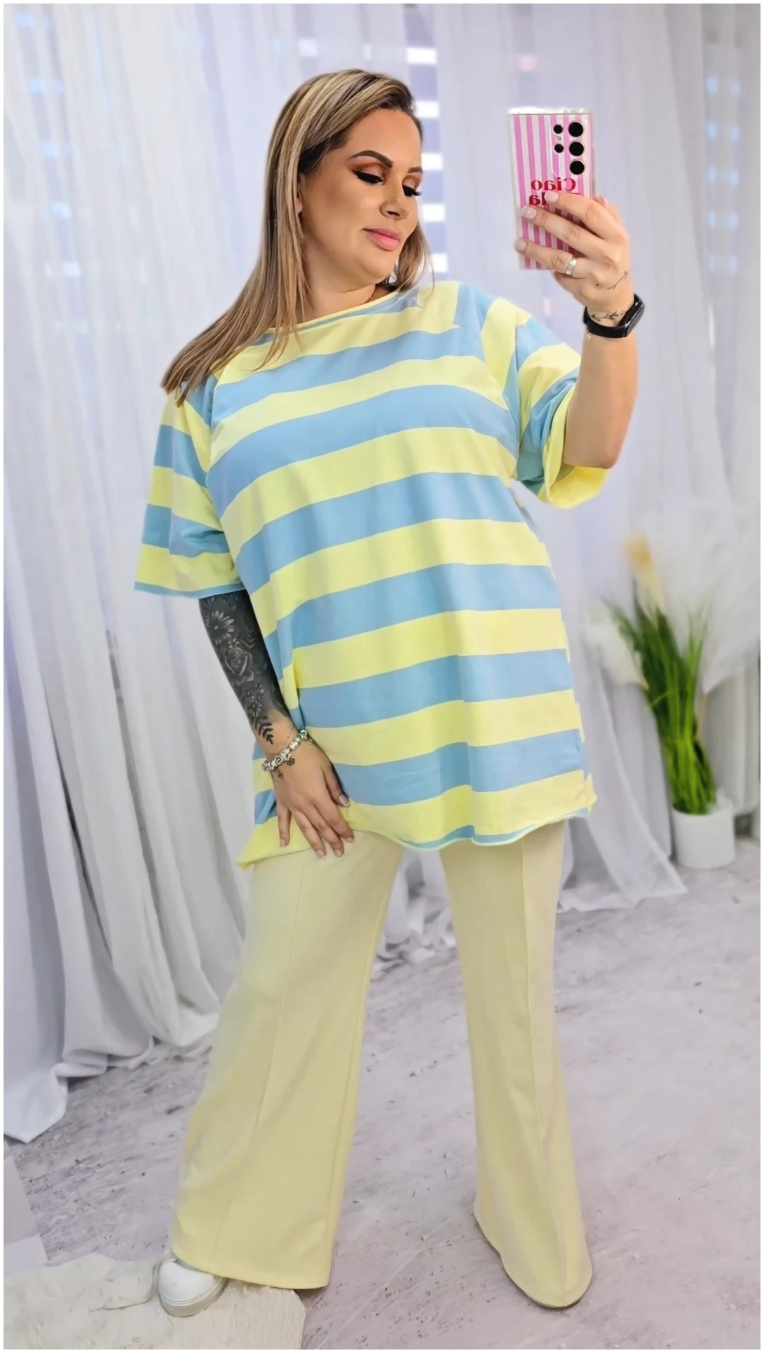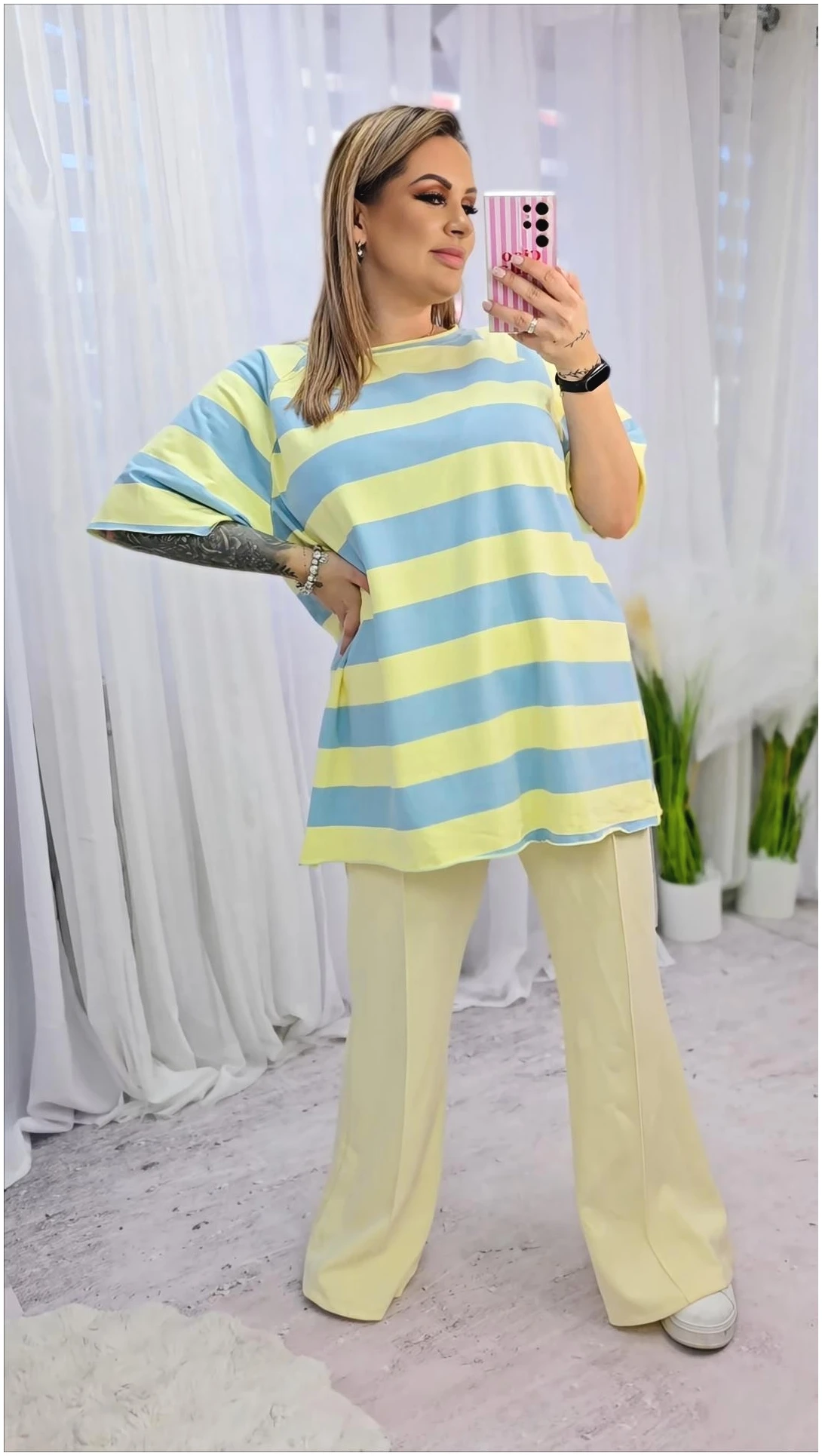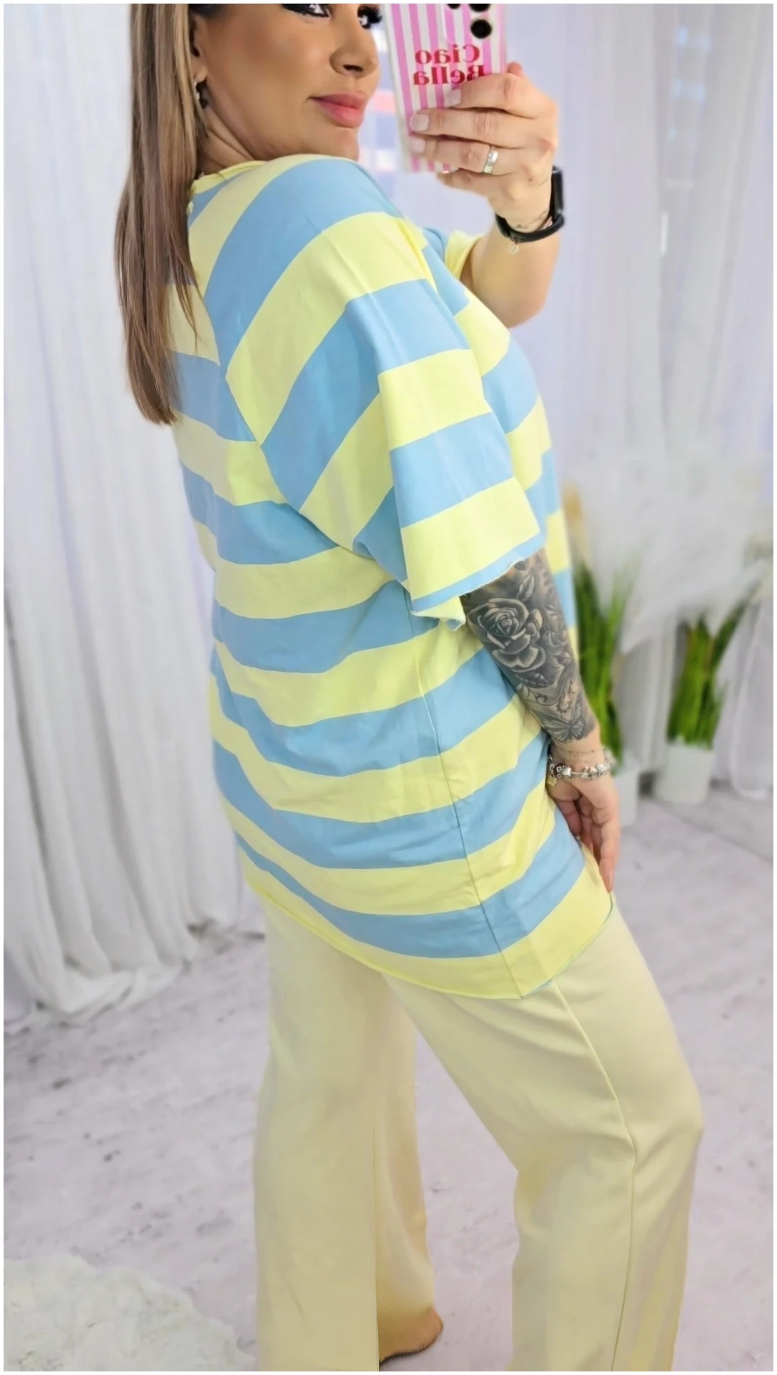 Klasyczny wzór w pasy sprawia, że bluzka świetnie sprawdzi się zarówno w codziennych stylizacjach, jak i w bardziej casualowych zestawach. To uniwersalny model, który z łatwością dopasujesz do jeansów, spodni materiałowych czy spódnicy.
