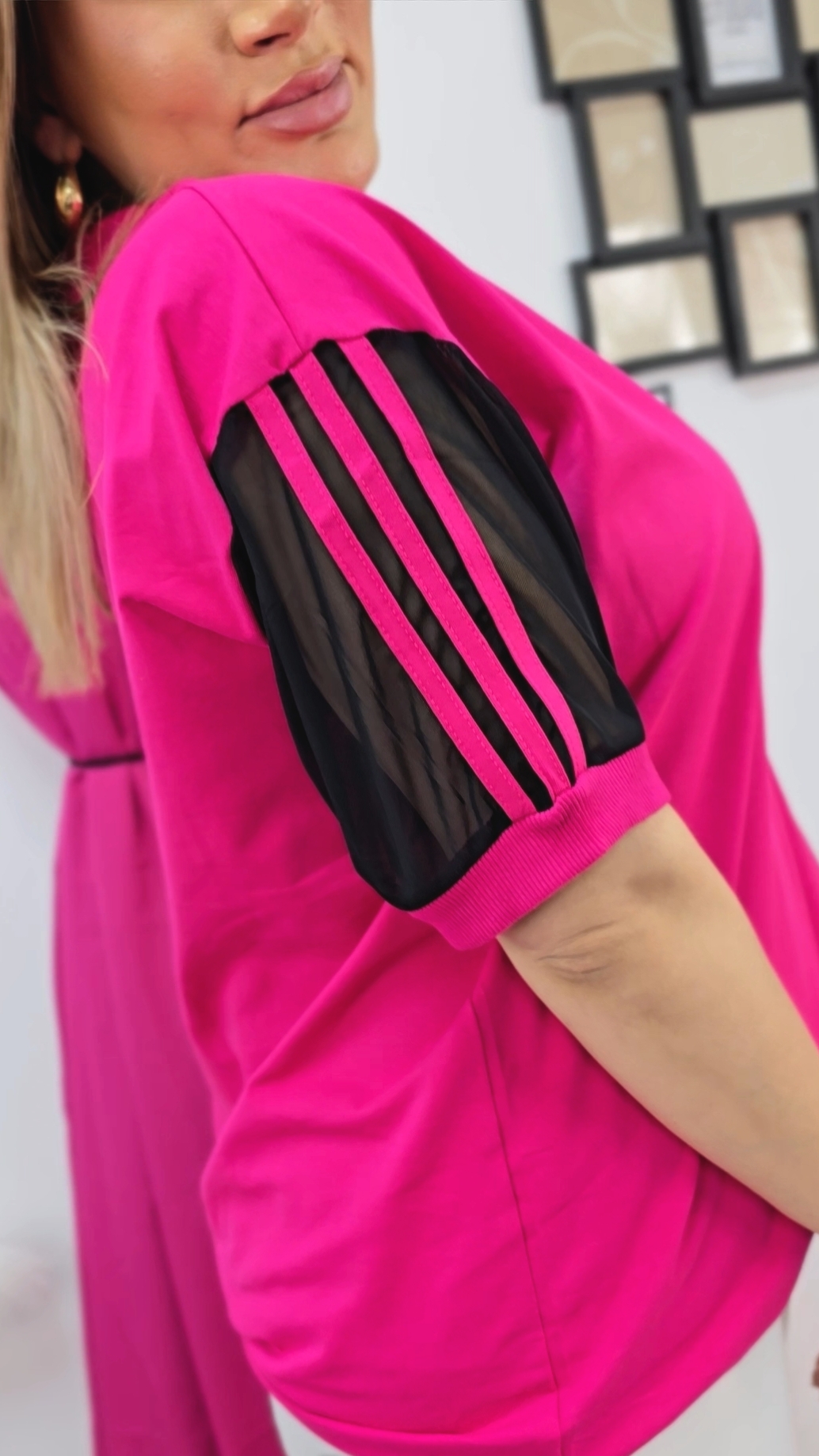 Stylowa bluzka z miękkiej, oddychającej bawełny z dodatkiem elastanu, która świetnie dopasowuje się do ciała. Tiulowe rękawy z modnymi lampasami dodają lekkości i wyjątkowego charakteru – idealna na co dzień i na specjalne okazje.